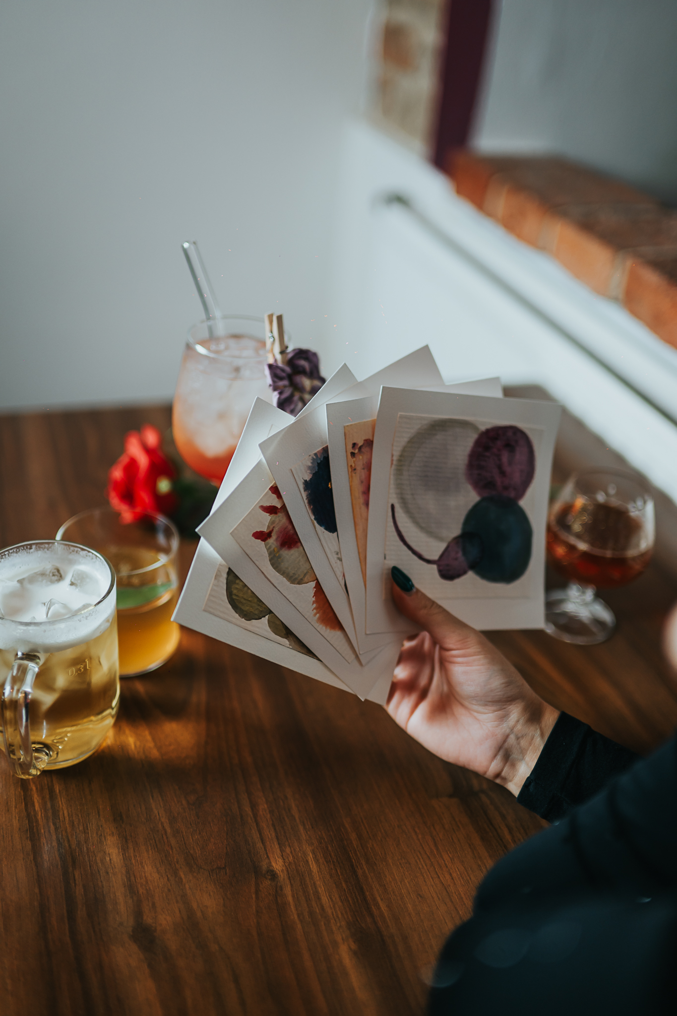 Zákazníci ode mě dostali sadu pěti karet – abstraktních ručně malovaných obrázků. Každá karta reprezentovala jeden lidský archetyp; milenec, král, myslitel, čaroděj a šašek. Na základě těchto archetypů vznikaly i samotné drinky – svůdný milenec s perlivým Poet wine, noblesní král s portským vínem a fíky, myslitel s bergamotovým likérem a šalvějí a podobně. Hosté na sebe nechali promluvit barvy, vzory a struktury karet. A s drinkem pak dostali ještě jednu kartu, která jim osvětlila, co si vybrali za drink, co obsahuje, jaký je jeho chuťový profil a jak je samotný archetyp charakterizován.